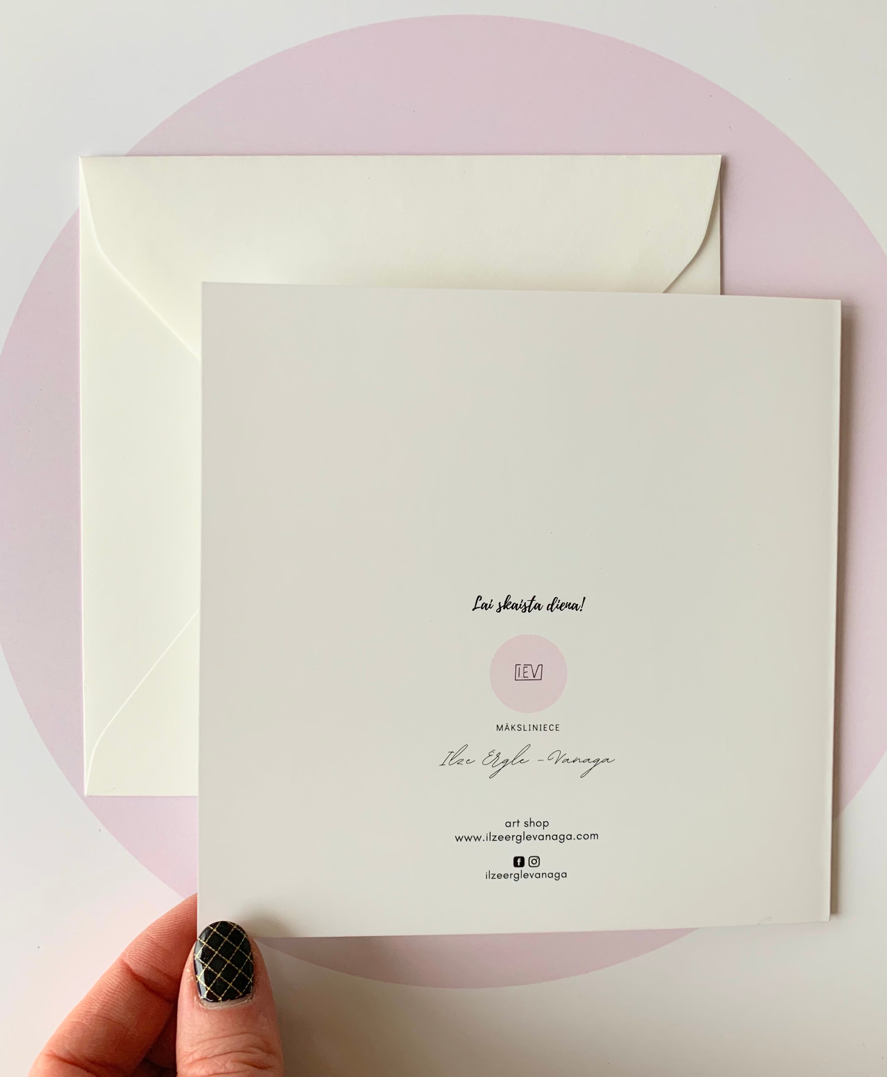 Kartītes izmērs: 15 x 15 cm, atvērtā veidā 30 x 15cm.