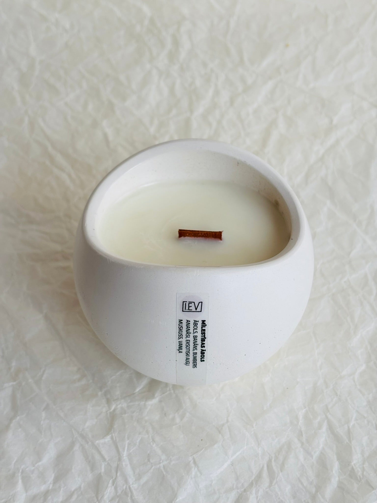 AROMĀTISKĀ VASKA SVECE BALTĀ ĢIPŠA TRAUKĀ AR KOKA DAKTI