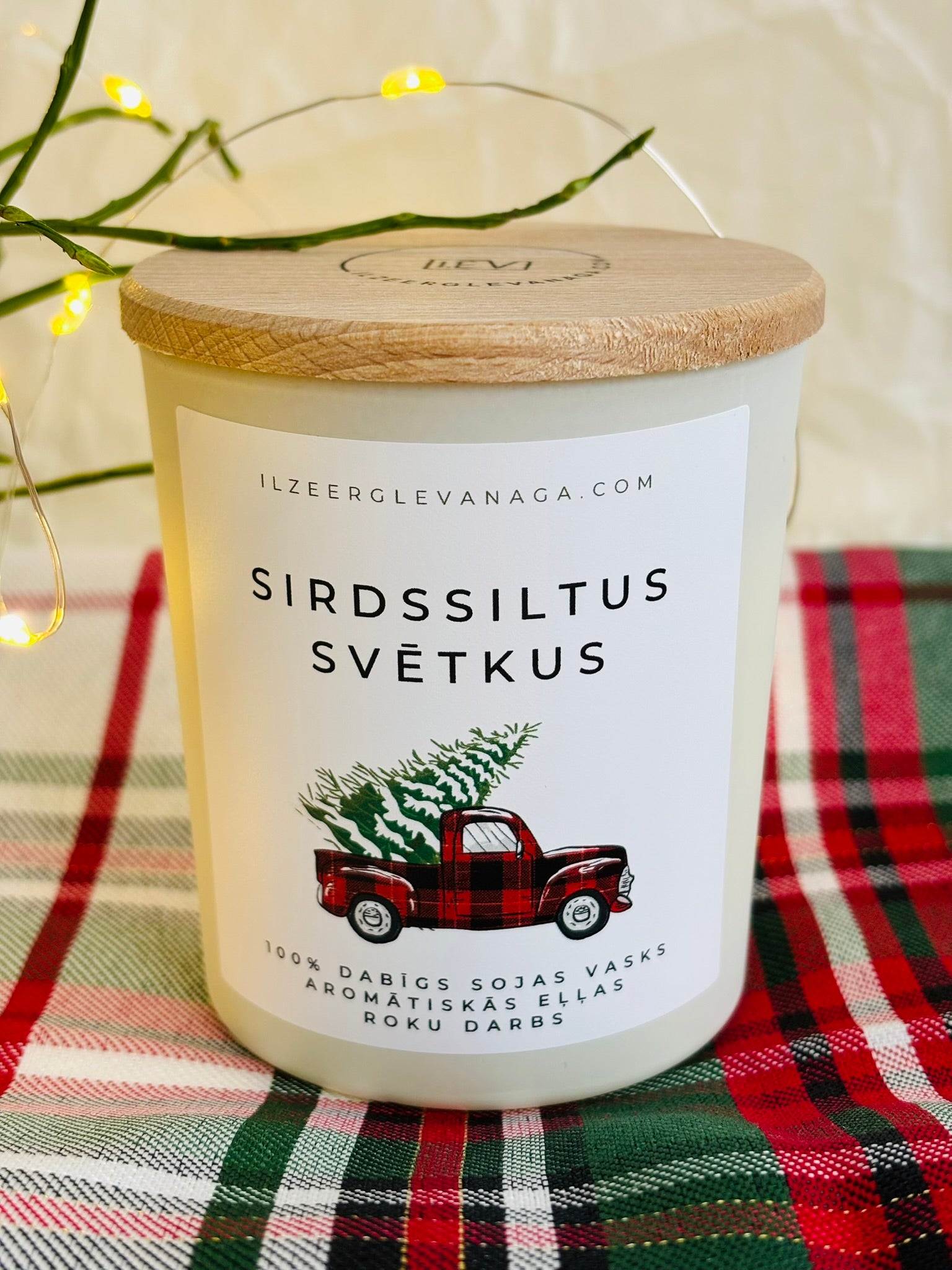 Ziemassvētku svece, kas piepilda mājas ar svētku sajūtu un siltu gaismu. Tā ienes meža svaigumu un eglītes aromātu, bet pieejamie aromāti – mandarīni, kanēļa miza, apelsīni un krustnagliņas – rada īpašu svētku noskaņu. Katrs aromāts ir kā mazs prieka mirklis, kas uzburs mājīgumu, atmiņas par bērnības Ziemassvētkiem un dāvanu gaidīšanas burvību. Mīļa, sirsnīga un iedvesmojoša dāvana cilvēkiem, kuri novērtē siltumu un roku darbu skaistumu.