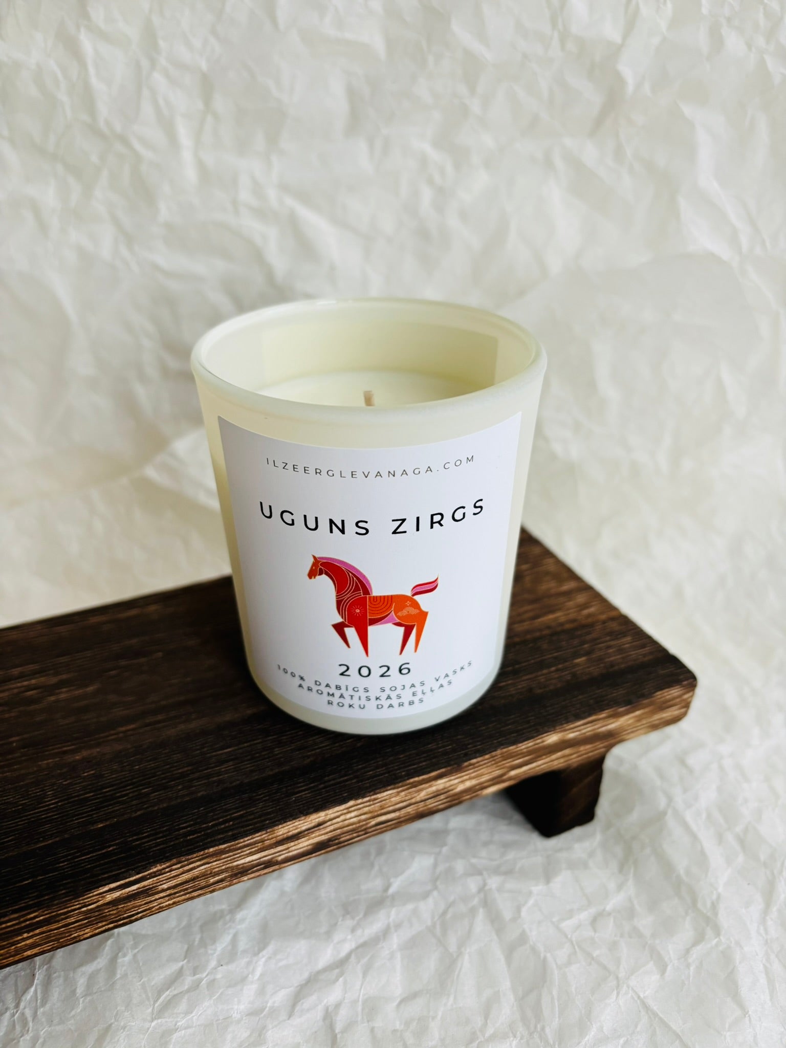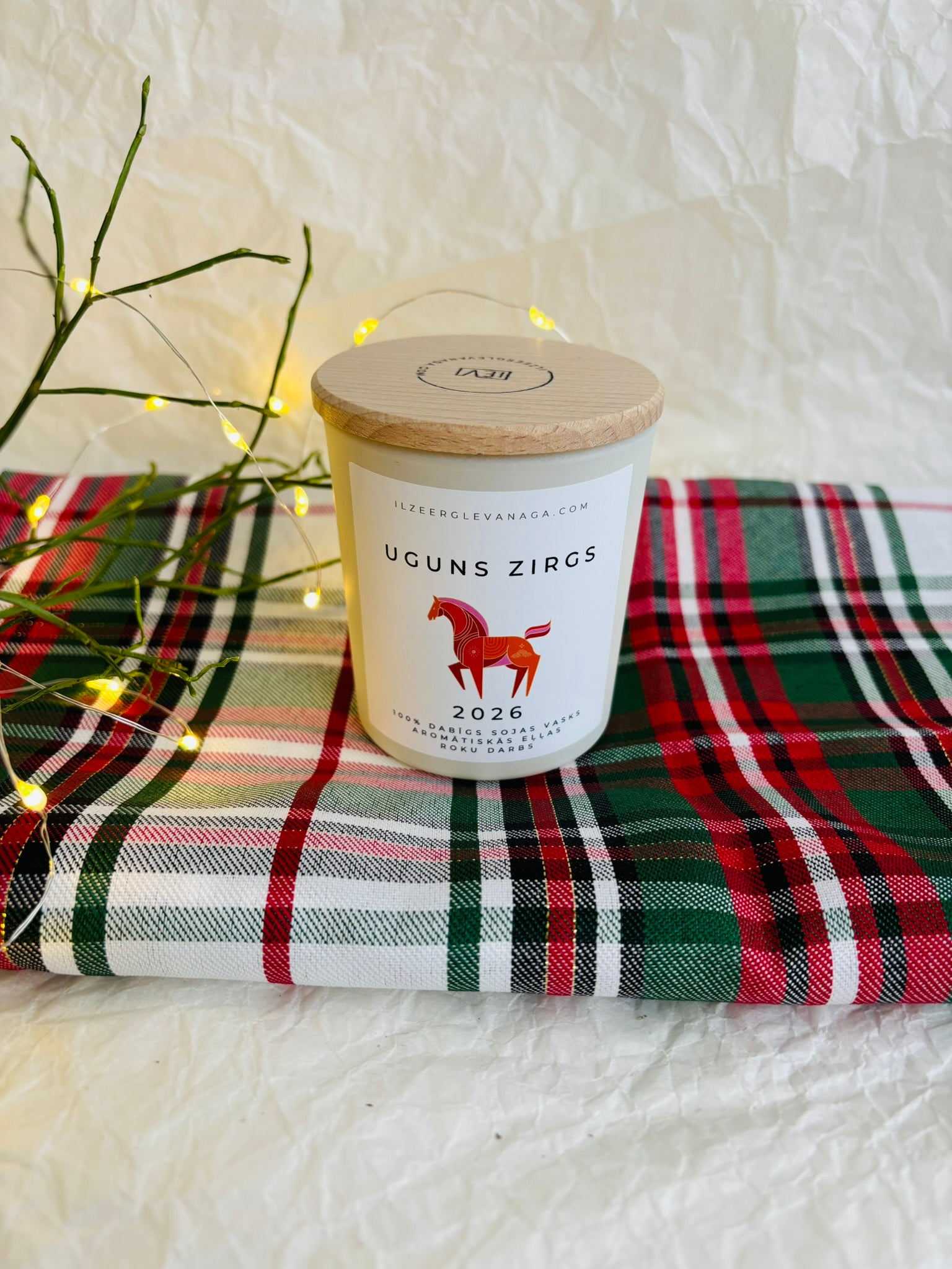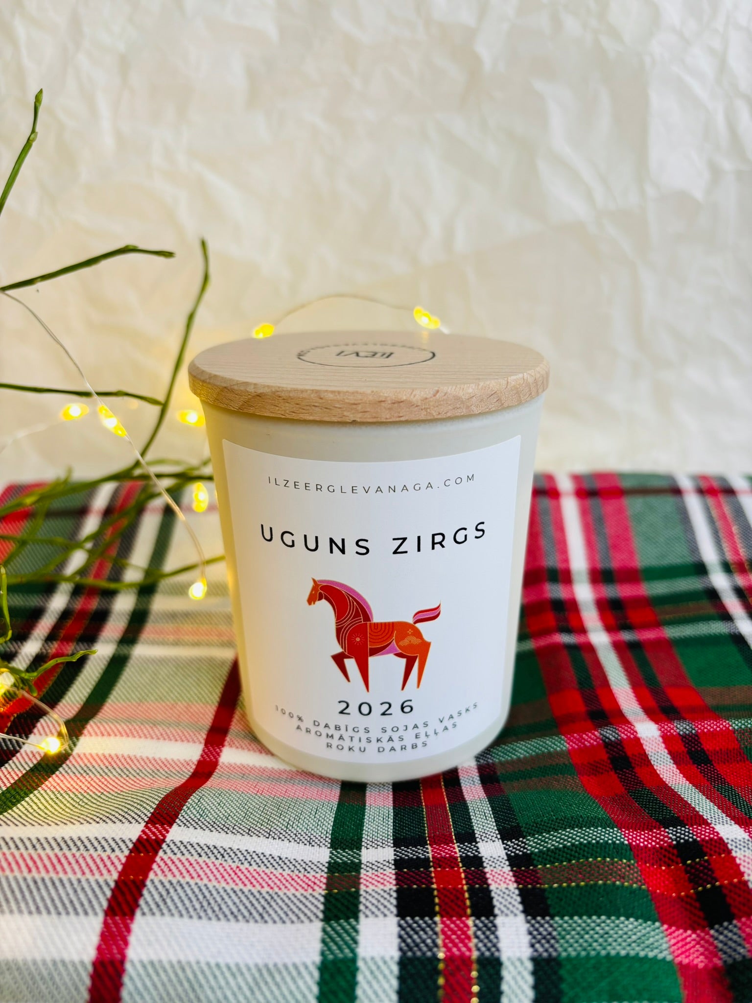 AROMĀTISKĀ SOJAS VASKA SVECE | UGUNS ZIRGS 2026