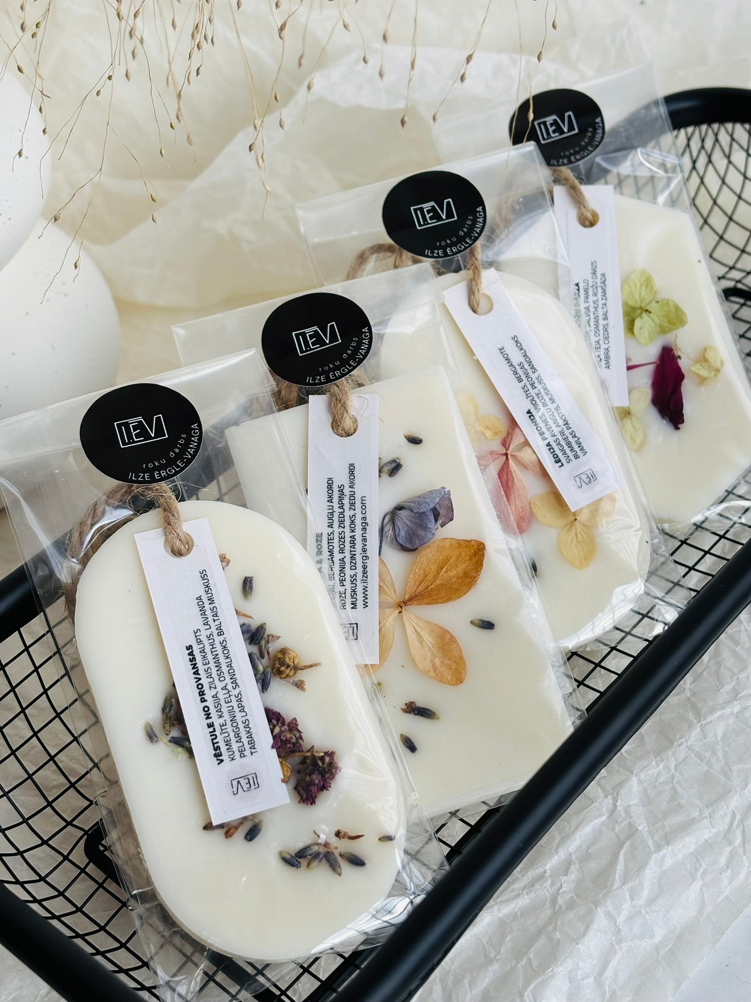 Smaržīgi un burvīgi, aromātiski eko sojas vaska gabaliņi papildināti ar sausajiem augiem, smaržos līdz pat 6 mēnešiem atkarīgs no katra aromāta intesitātes.