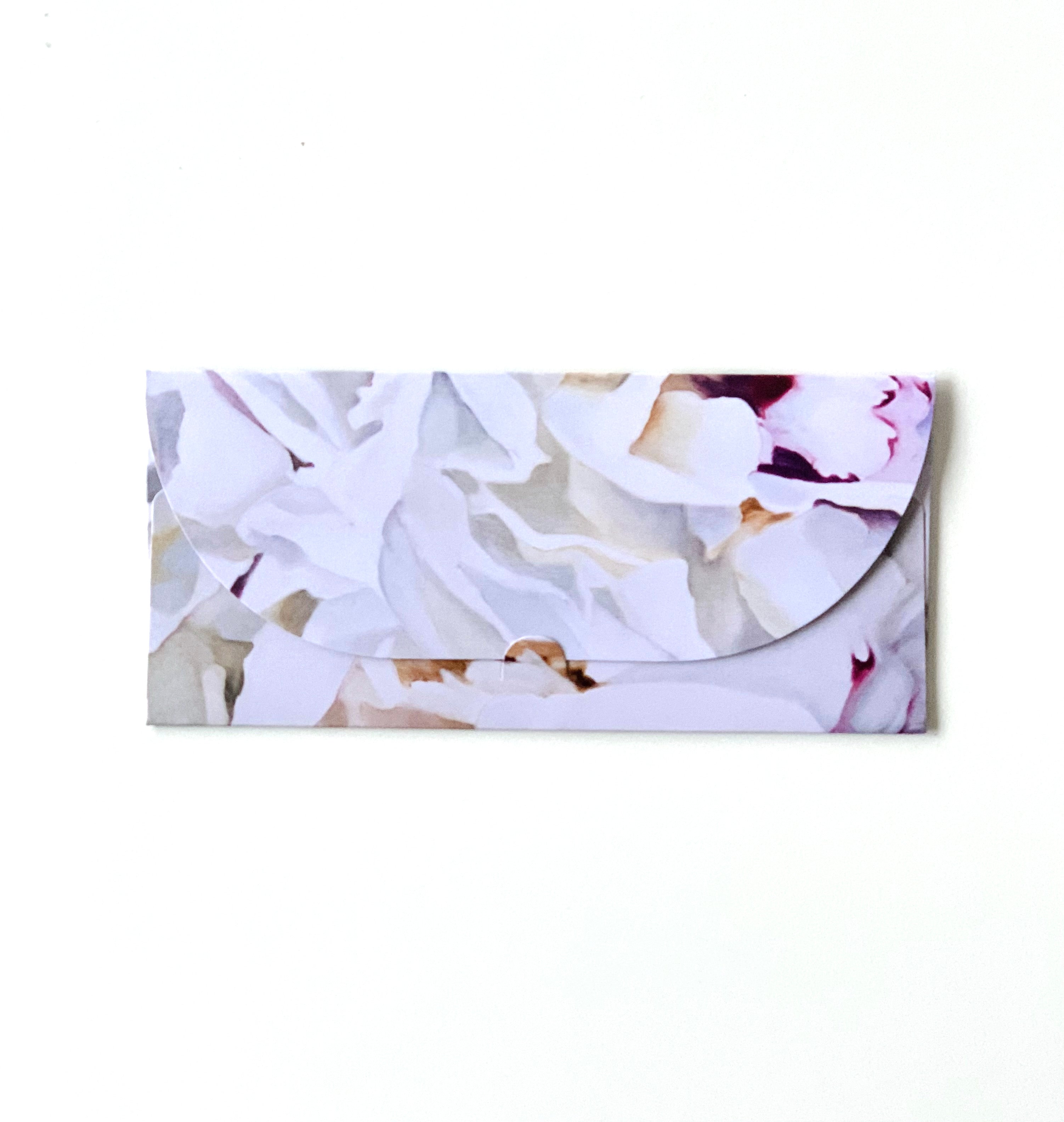 A monetary gift envelope with a reproduction of a peony painting from the exhibition "Immerse yourself in the magic of peonies".