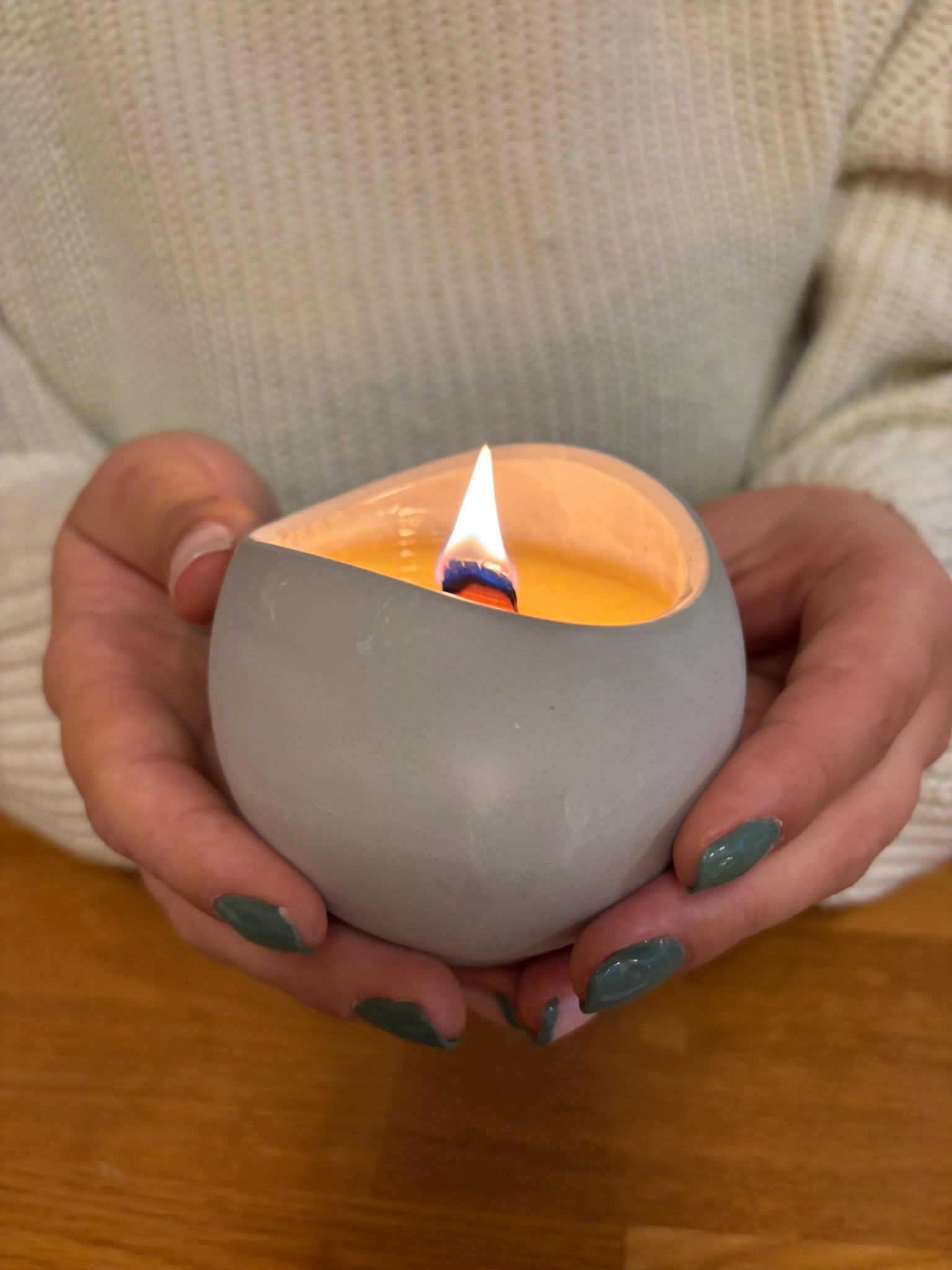 Izsmalcināta, ar mīlestību radīta svece, kas apvieno eleganci, dabiskumu un siltumu. Katrs trauks ir 100% roku darbs, veidots no ģipša.