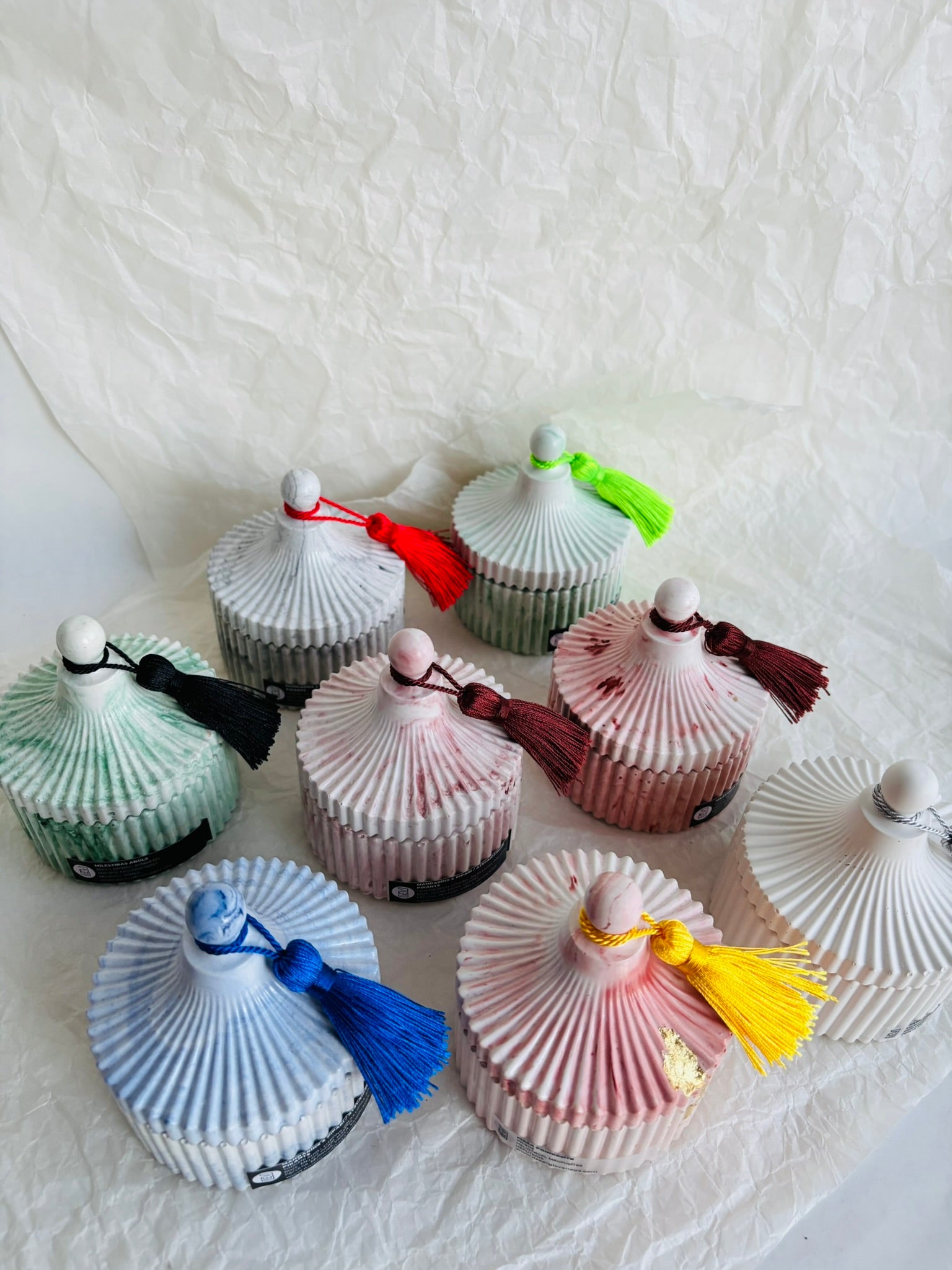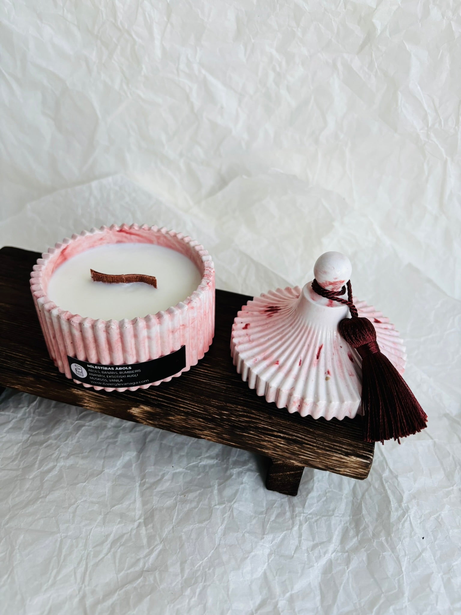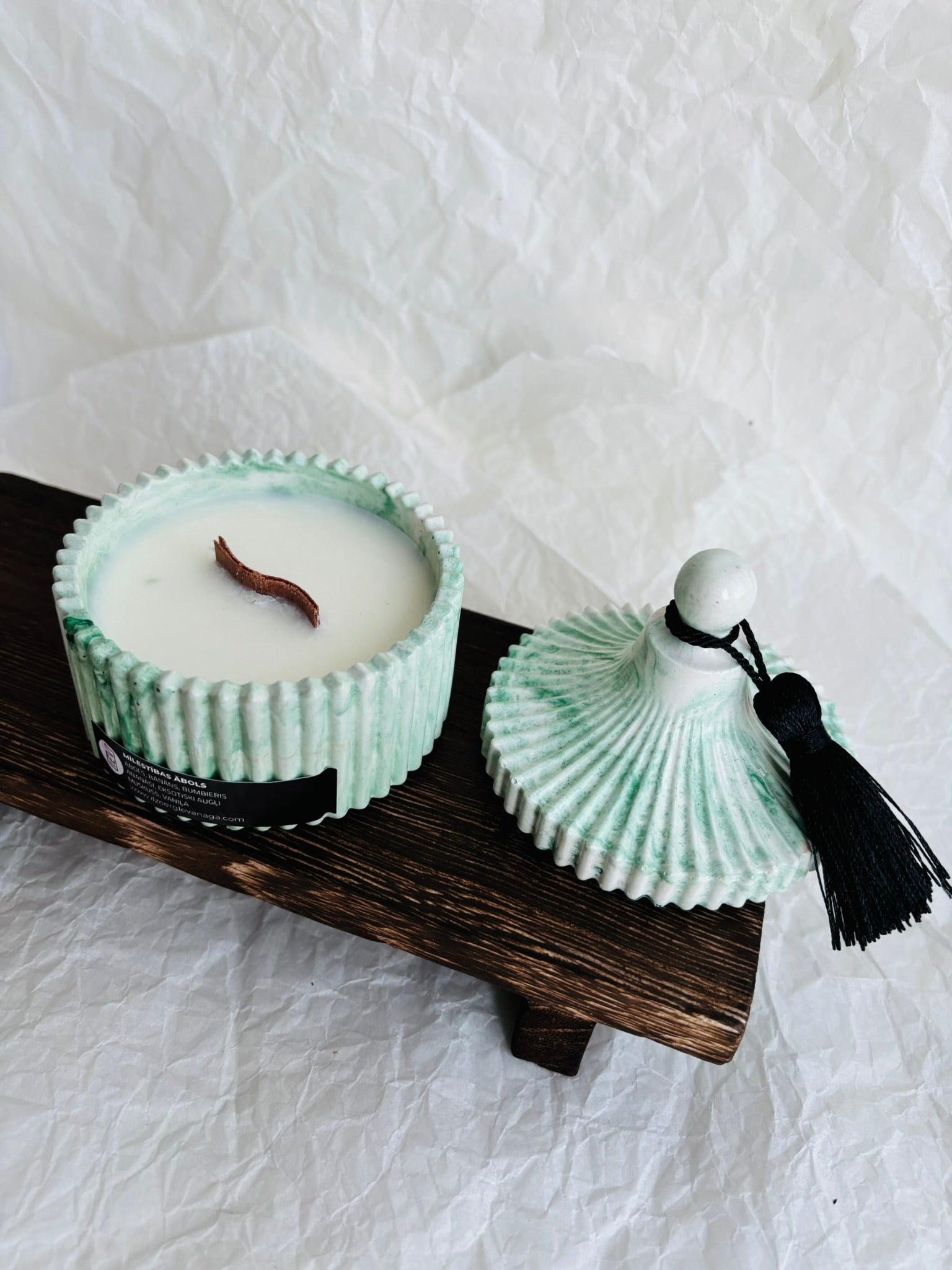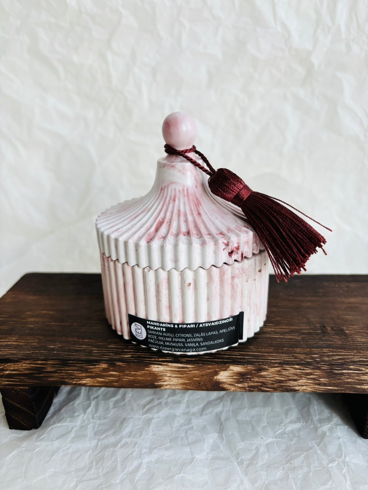 Izsmalcinātas, ar mīlestību radītas sveces, kas apvieno eleganci, dabiskumu un siltumu. Katrs trauks ir 100% roku darbs, veidots no ģipša.