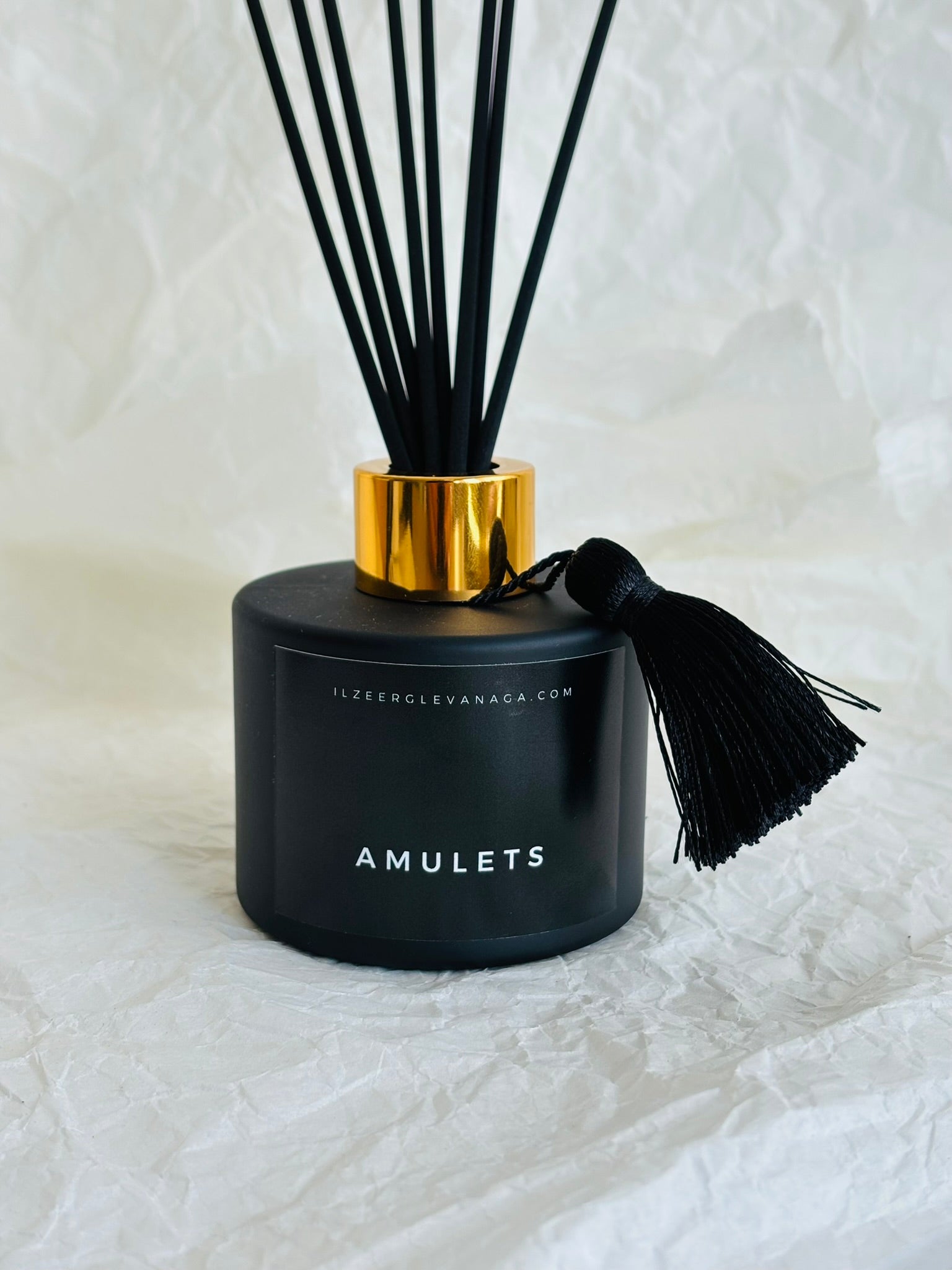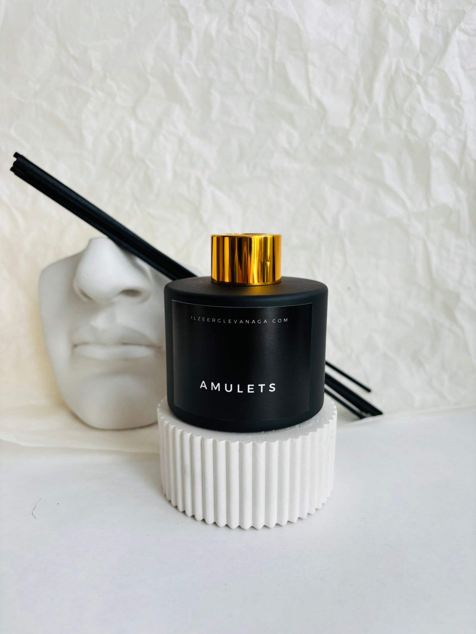 Aromāts "Amulets" ir izsmalcināta smaržu kompozīcija, kas atgādina slepenu amuletu – spēka un valdzinājuma simbolu. Tā atveras ar kanēļa un muskatrieksta pikanto siltumu, ko līdzsvaro dzidrs citrona svaigums. Aromāta sirdī uzplaukst bagātīgs ruma un tabakas akords, kam cauri vijas minerālistisks dzintars, radot dziļumu un neatvairāmu noslēpumainību. Noslēgumā atklājas jutekliska vaniļa, Virdžīnijas ciedra koksnes siltums un maigs muskuss, piešķirot smaržai greznu pilnību.