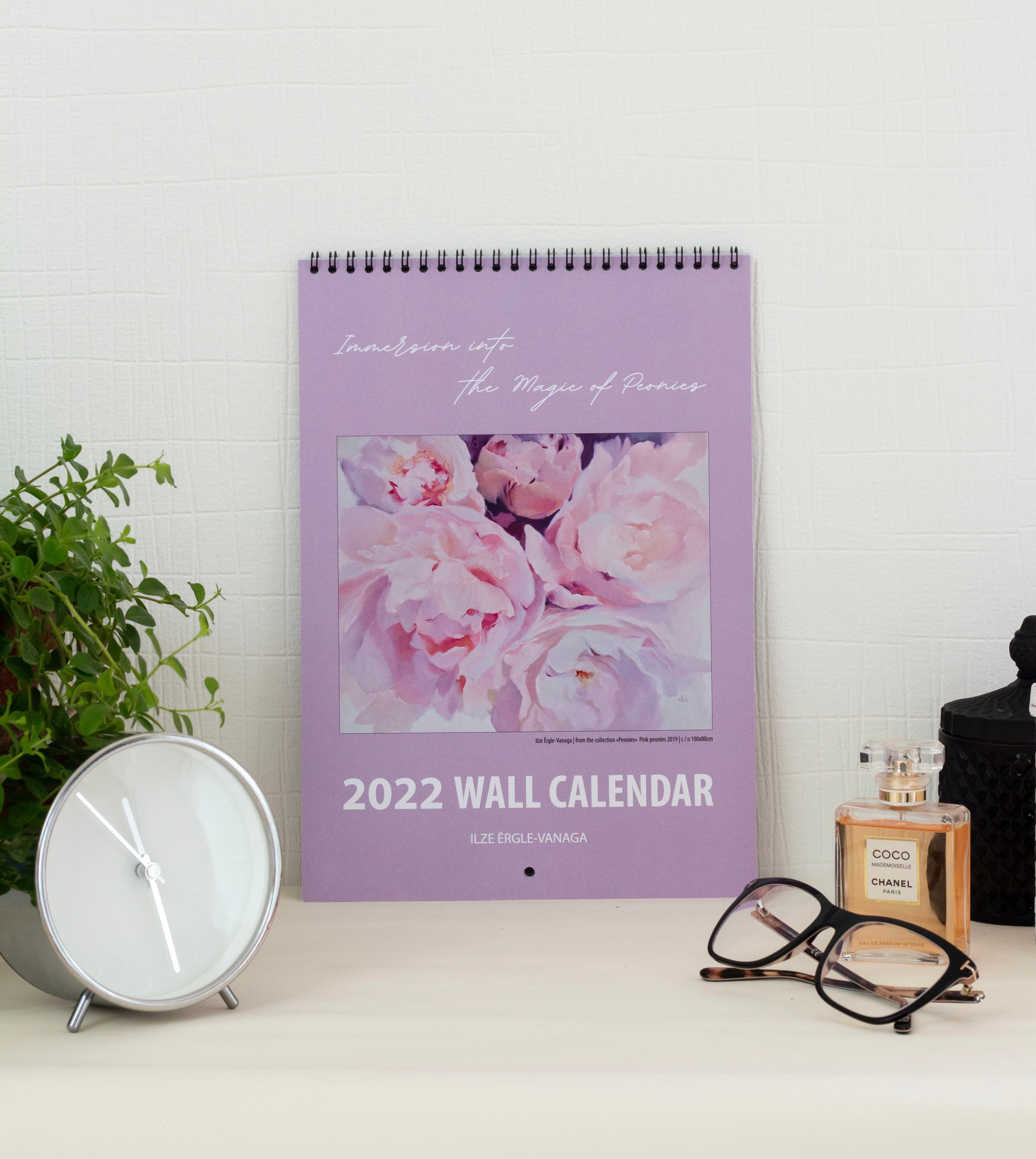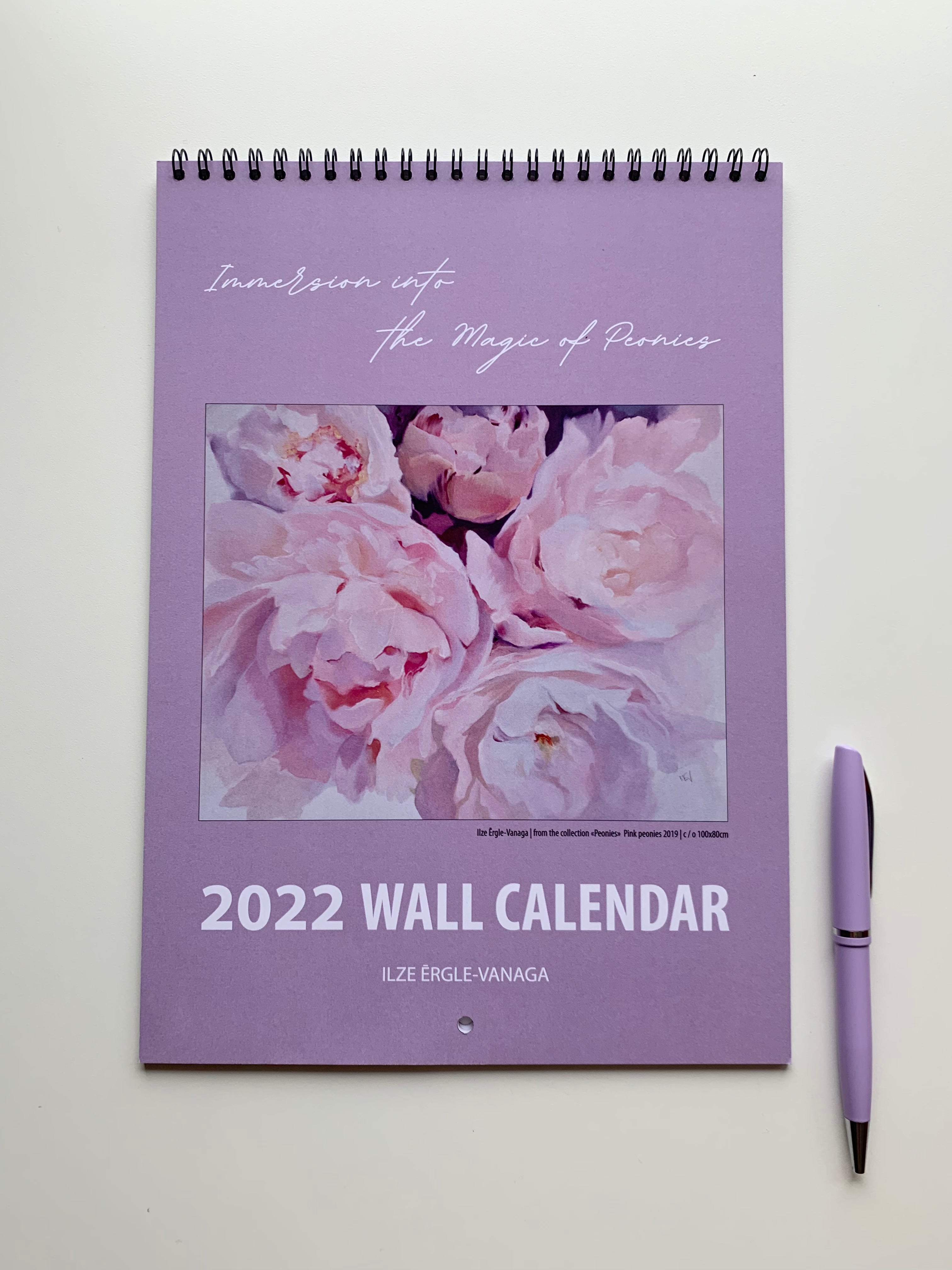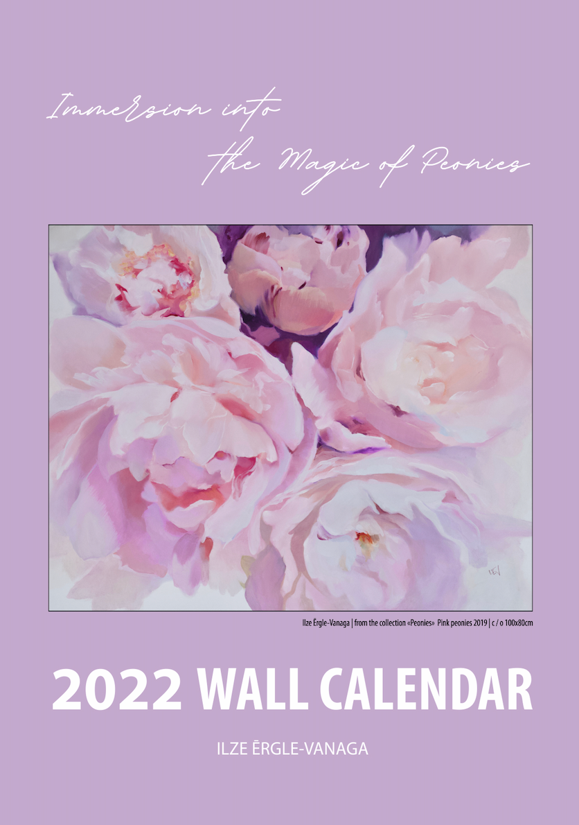 Sienas kalendārs ar peoniju gleznām no izstādes "Iegrimt peoniju burvībā".