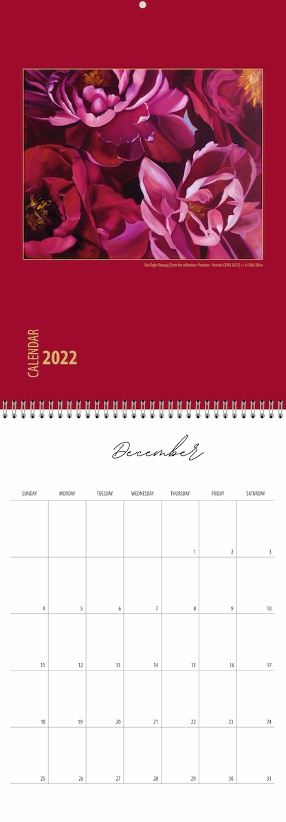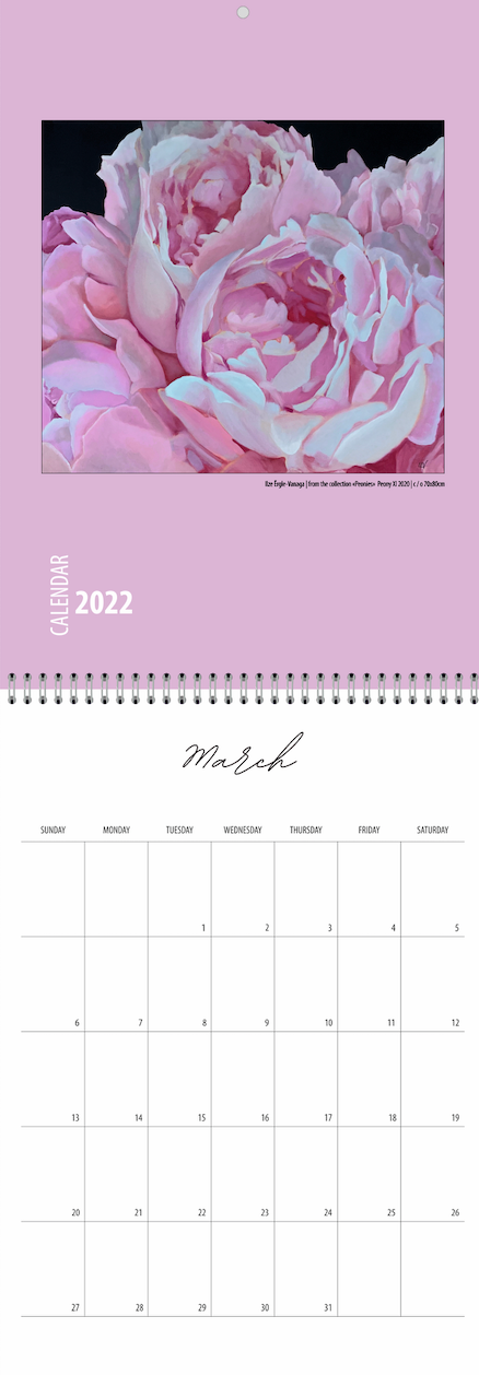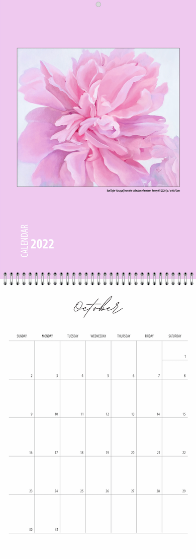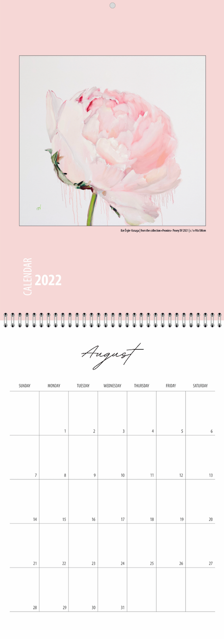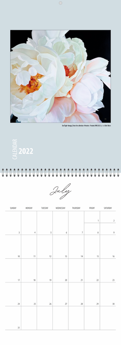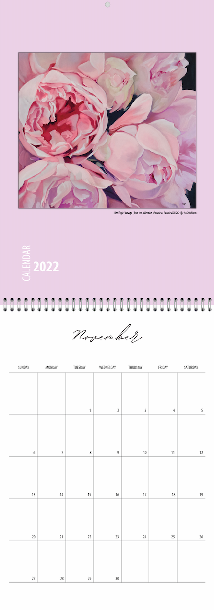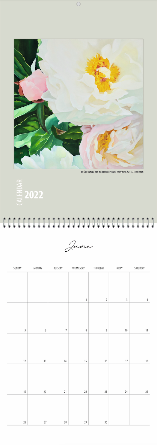 Sienas kalendārs ar peoniju gleznām no izstādes "Iegrimt peoniju burvībā".